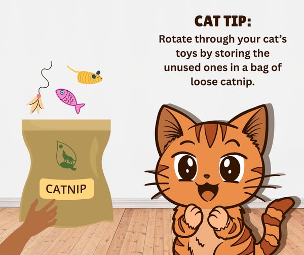 Keep your cat excited about all of their toys by rotating them, and storing the unused ones in a bag of loose catnip.